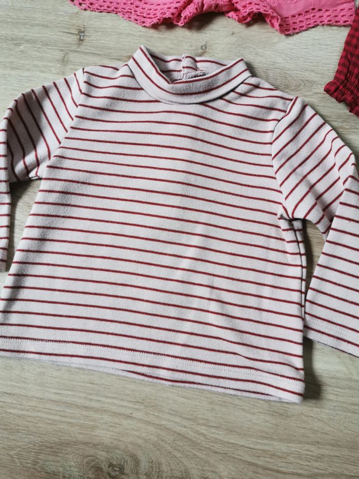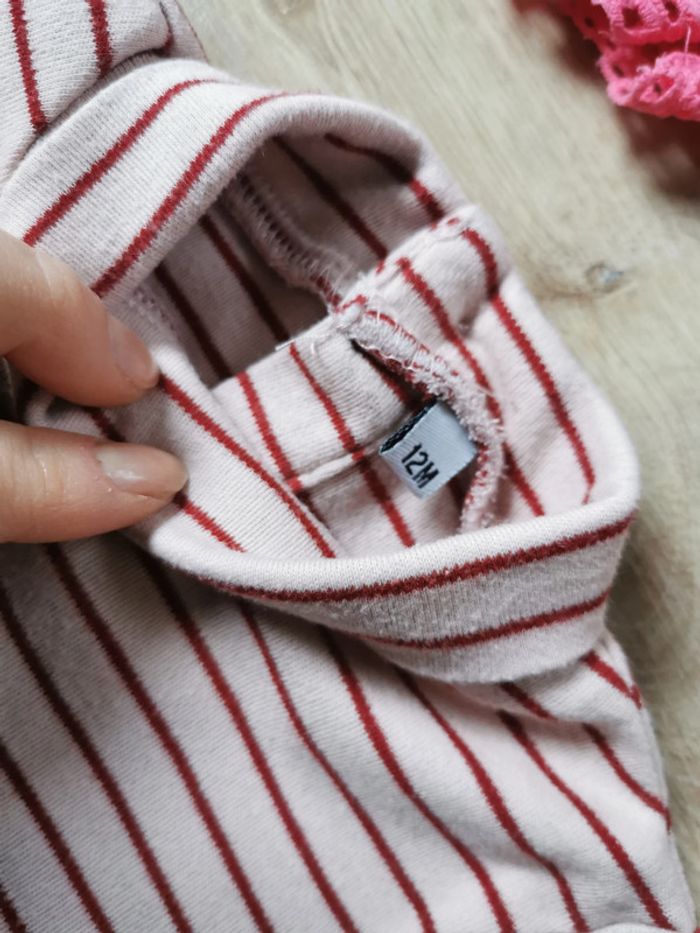 Pantalons, short et t-shirt lot de 4 vêtements bébé, non disscociable, en très bon état général, comprend : 1 t-shirt manches longues, col montant, rose à rayures, taille 12 mois 1 short rose dentelle en coton, taille 12-18 mois, marque Primark 1 legging rose, en 95% coton et 5% élasthanne, taille 12 mois, marque Gémo 1 pantalon légér à rouge à carreaux, en coton 100%, taille 12 mois (73-76 cm, 10kg), marque Kiabi Poids du lot fait 170g. Pensez à faire des lots afin de bénéficier des remises que j'ai régulièrement sur ma page. #lotdevetements #vetementsbebe #pantalonsbebe #kiabi #gemo #bebe12mois #bebe18mois #tshirtbebe