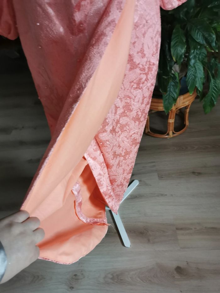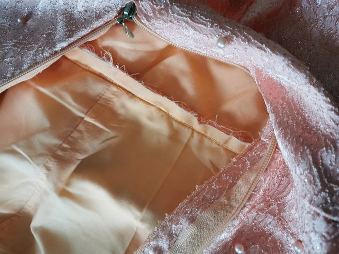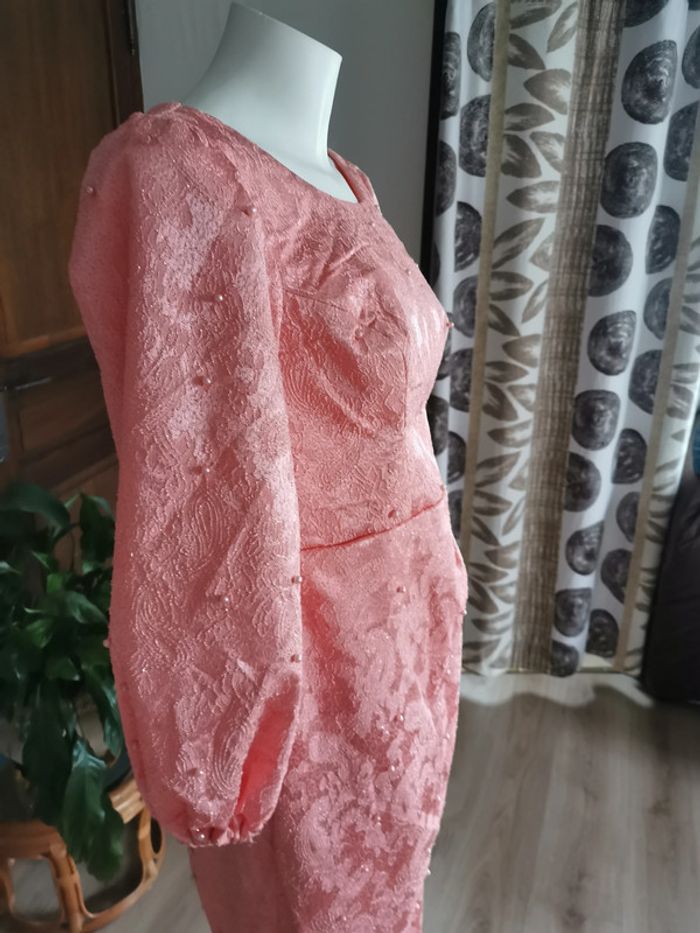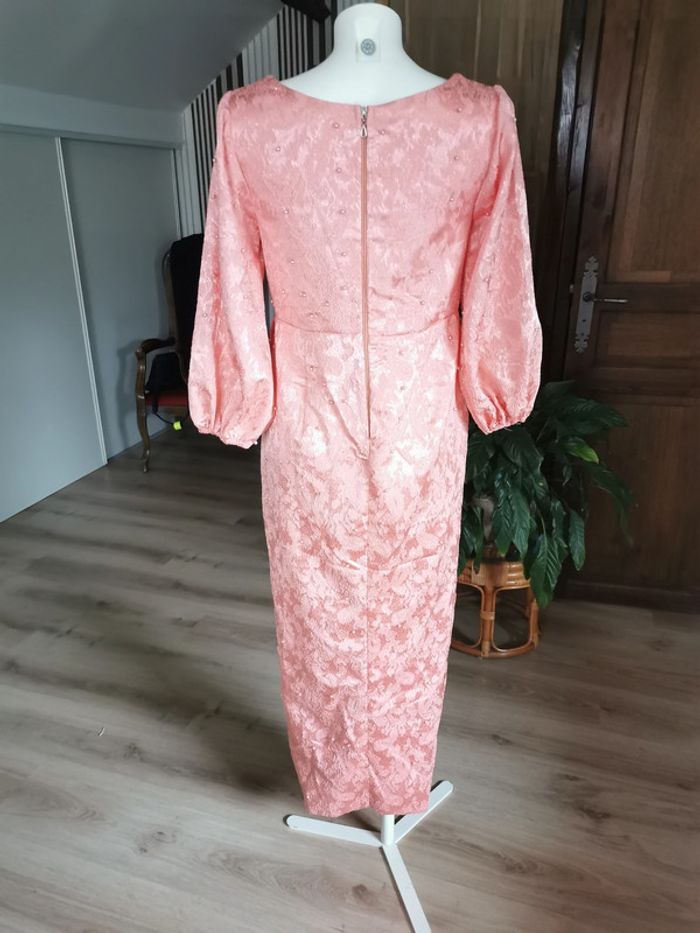 Robe rose de soirée à perles nacrées, robe à manches 3/4 type ballons, robe en très bon état, cousue mains, les coutures ne sont pas travaillées à la surjeteuse, robe taille haute, taille probablement 36 (consultez les mesures ci-dessous).Au dos fermeture éclair, la doublure en coton mélangé, tissu polyester . Mannequin fais la taille 36. Mesures : Longueur robe : 132 cm Longueur manche depuis l'aisselle : 39 cm Longueur manche depuis l'épaule : 52 cm Largeur dos entre les épaules : 42 cm Largeur dos entre les aisselles : 43 cm Largeur taille haute : 42 cm Largeur hanches : 52 cm Poids : 735g #roberose #robedesoiree #robeperles #robetaillehaute