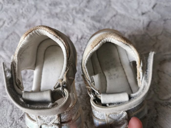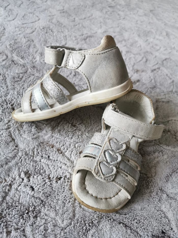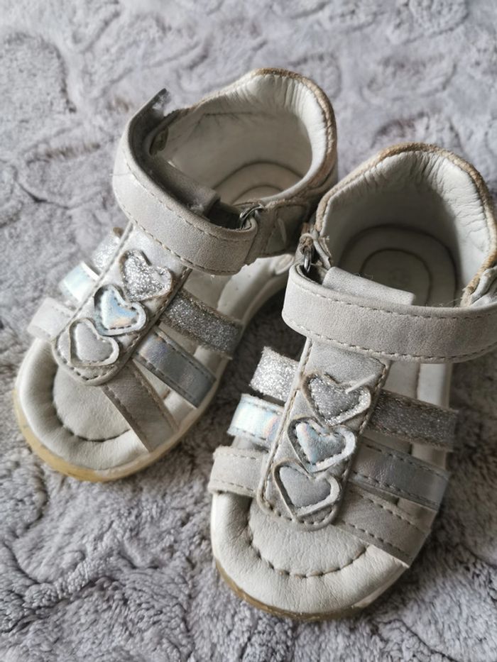 Sandales bébé cœurs gris à paillettes, fermeture scratch, taille 21, état satisfaisant, poids 161g #sandalesbebe #sandalescoeurs #sandalesgris #sandalespaillettes #sandalestaille21 #nupiedsgris