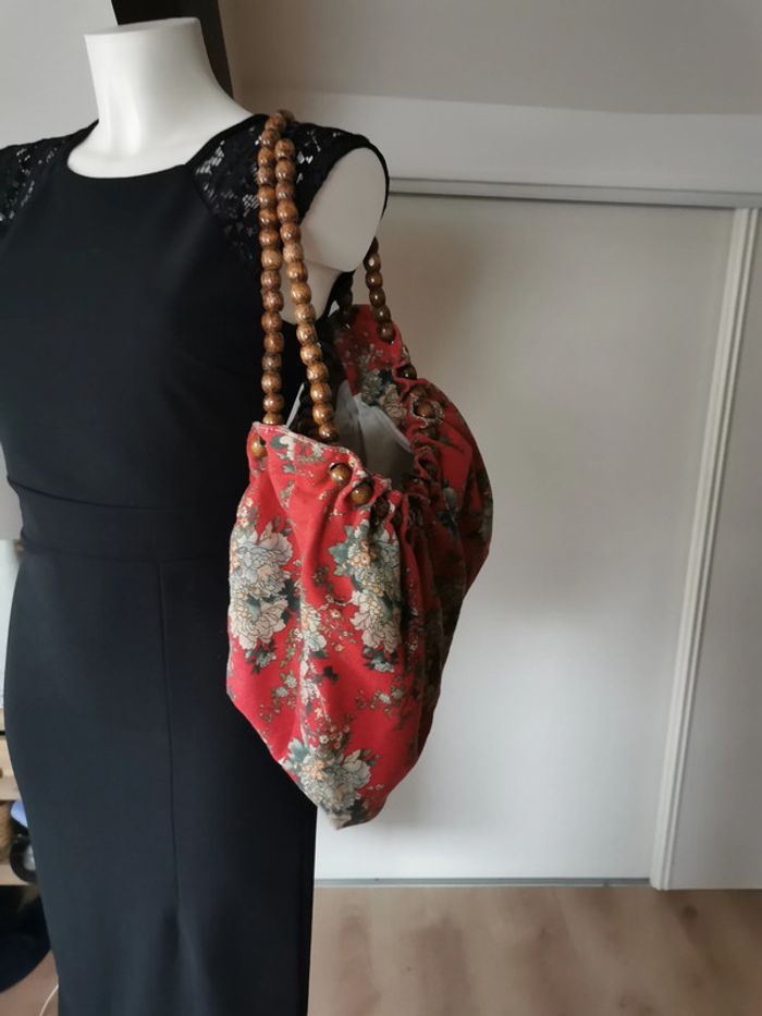 Sac en tissu avec les anses en perles de bois - photo numéro 8