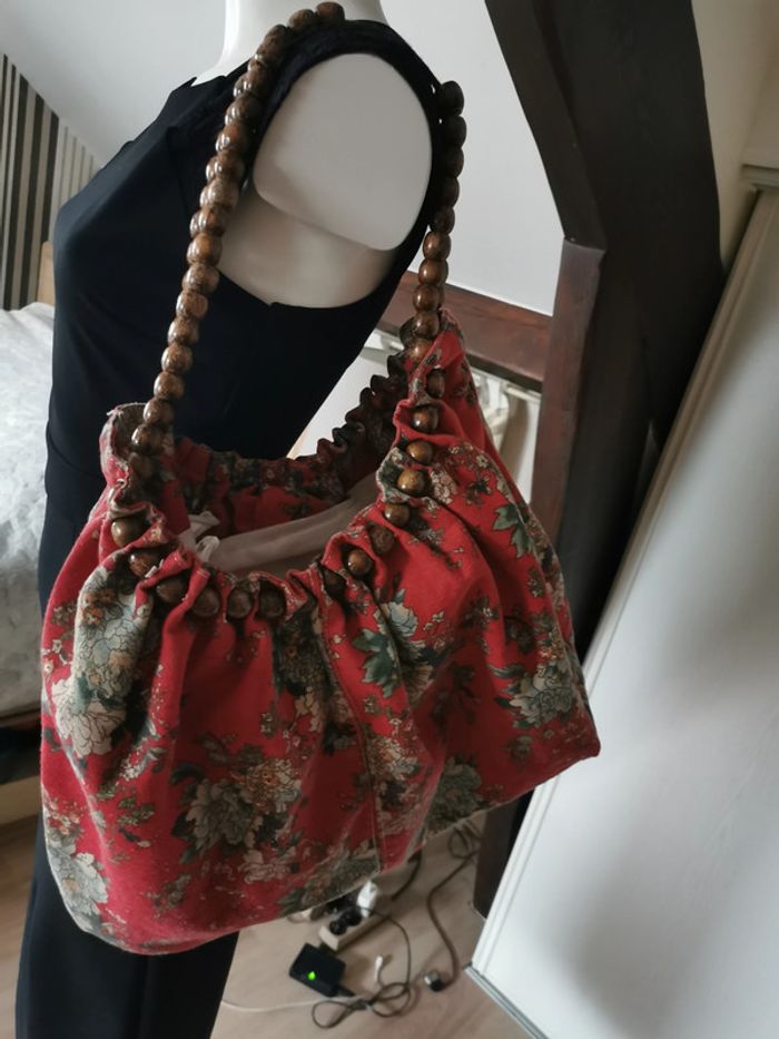 Sac en tissu avec les anses en perles de bois - photo numéro 1