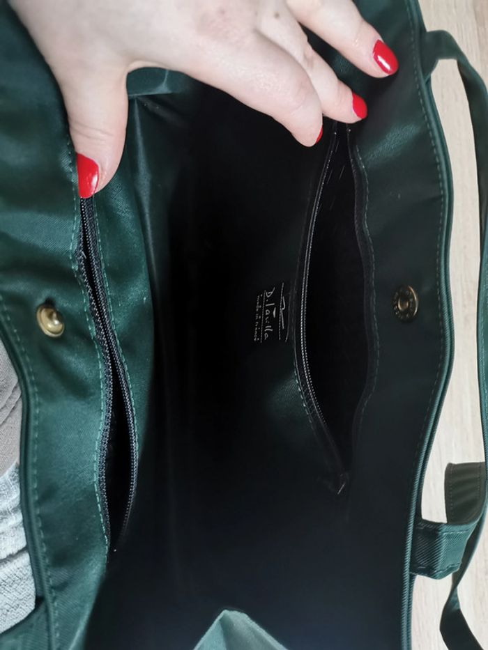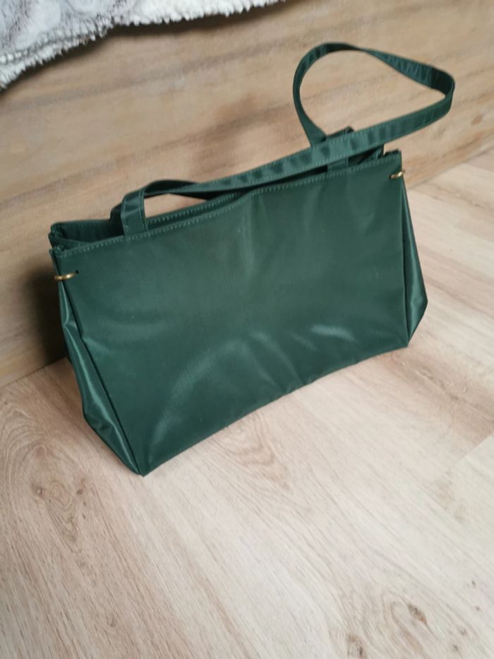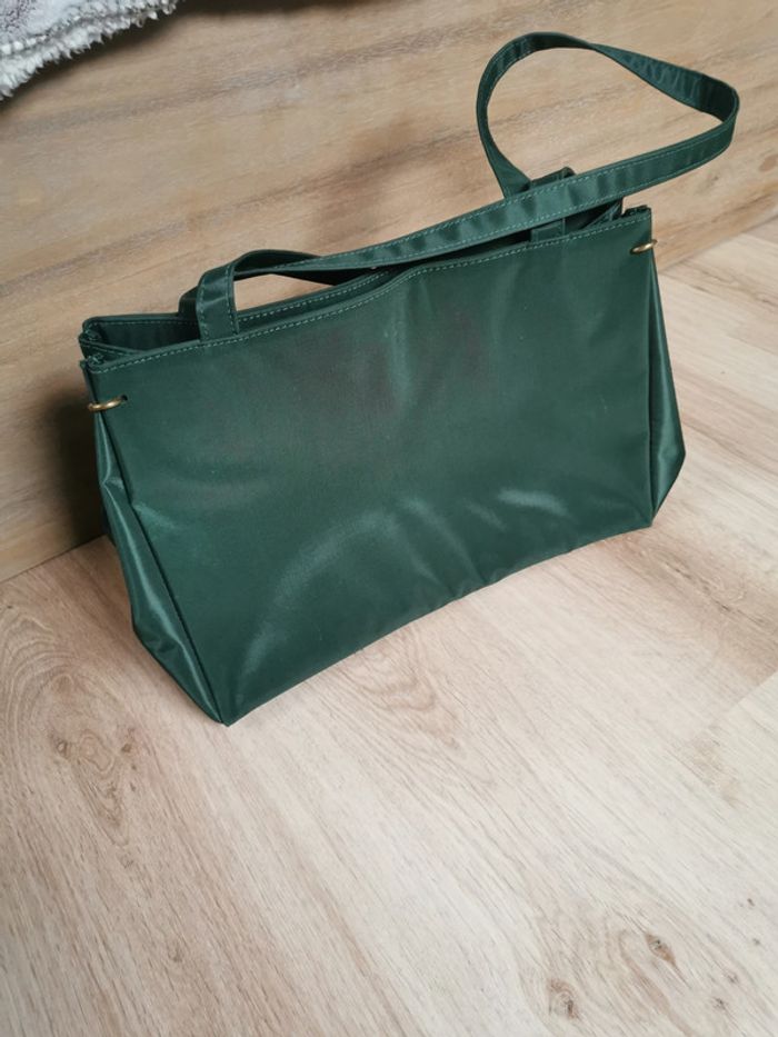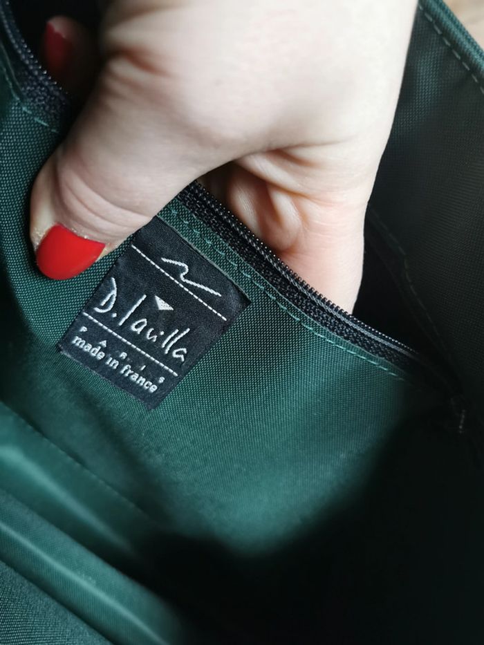 Sac à main vert, marque D. La villa, vintage, en très bon état, comme neuf, jamais servi. Sac made in France, san en tissu synthétique imperméable, deux poches à zip à l'intérieur en plastique noir, le sac a deux anses, fermoir 1 bouton à pression. Mesures : Longueur : 32 cm Hauteur : 22 cm Epaisseur : 13,5 cm Poids : 425g #sacvert #sacmadeinfrance #sacdlavilla #sacamain #sacvintage