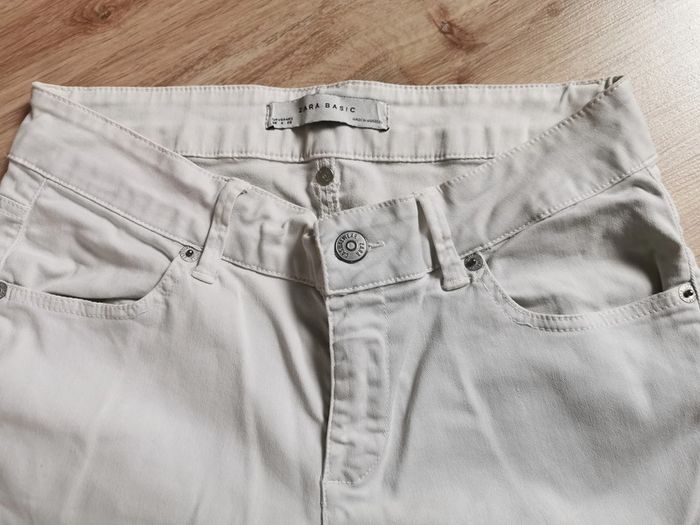 Pantalon gris, marque Zara Basic, taille 36, composition : 98% coton, 2% élasthanne, belle qualité, en bon état, quelques petites taches, pantalon type jean skinny. Mesures : Longueur jambe depuis la taille : 97 cm Longueur jambe depuis l'entrejambe : 73 cm Tour de l'entrejambe : 54 cm Largeur taille : 36 cm Largeur hanches : 42 cm Largeur cuisse : 21 cm Largeur cheville : 12 cm Poids : 365 g #pantalonzara #jeanzara #pantalongris #zara #pantalontaille36 #jeantaille36