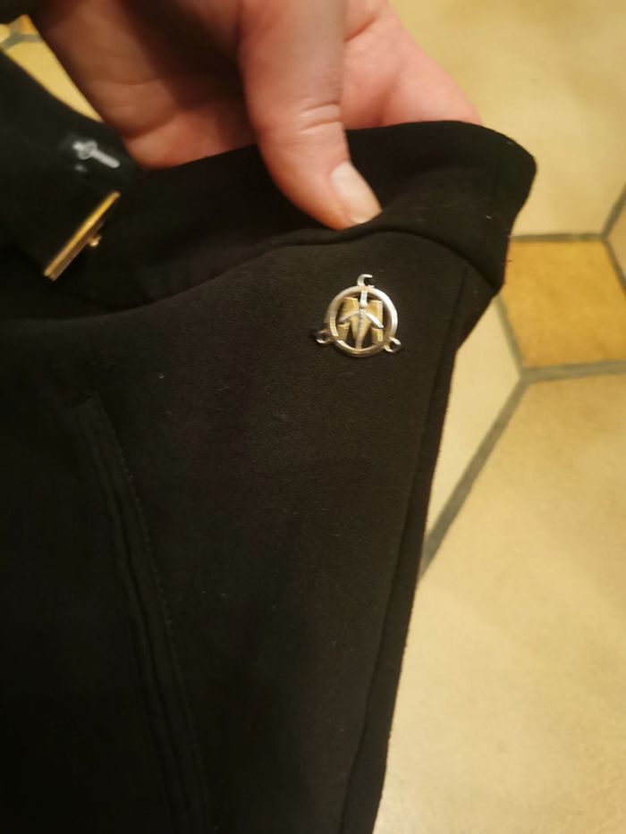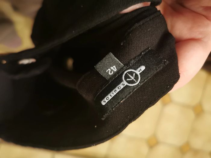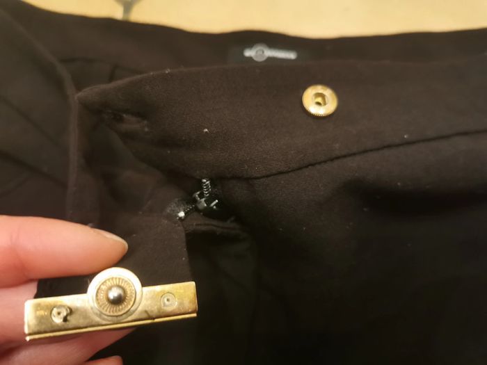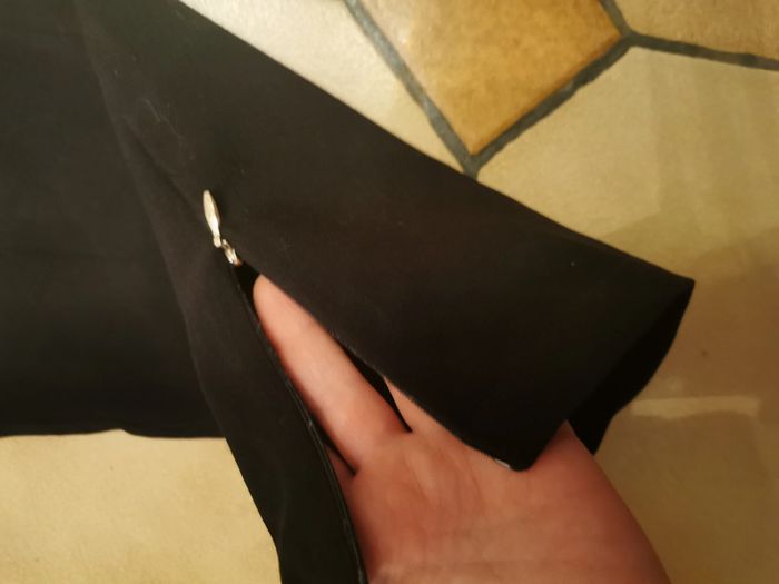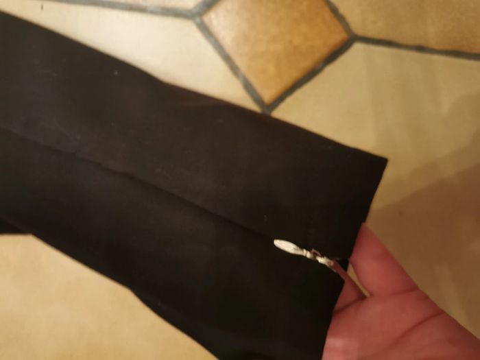 Pantalon classique noir, marque Mosquitos, taille 42, il n'y a pas d'étiquette de composition, mais ressemble à de la laine et viscose. Pantalon classique type carotte avec les fermetures éclair sur les chevilles de 10 cm de long, pantalon se ferme devant par la fermeture éclair, le bouton intérieur et un bouton pression, il est en très bon état général. Pantalon est assez lourd et a un joli tombée, imitation poches devant. Mesures : Longueur jambe depuis la taille : 90 cm Longueur jambe depuis l'entrejambe : 65 cm Tour de l'entrejambe : 68 cm Largeur taille : 43 cm Largeur hanches : 53 cm Largeur cuisse : 27 cm Largeur cheville : 17 cm Poids : 385 g #pantalonnoir #pantalonmosquitos #pantaloncarotte #pantalonnoirtaille42 #pantalonclassique