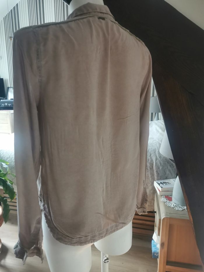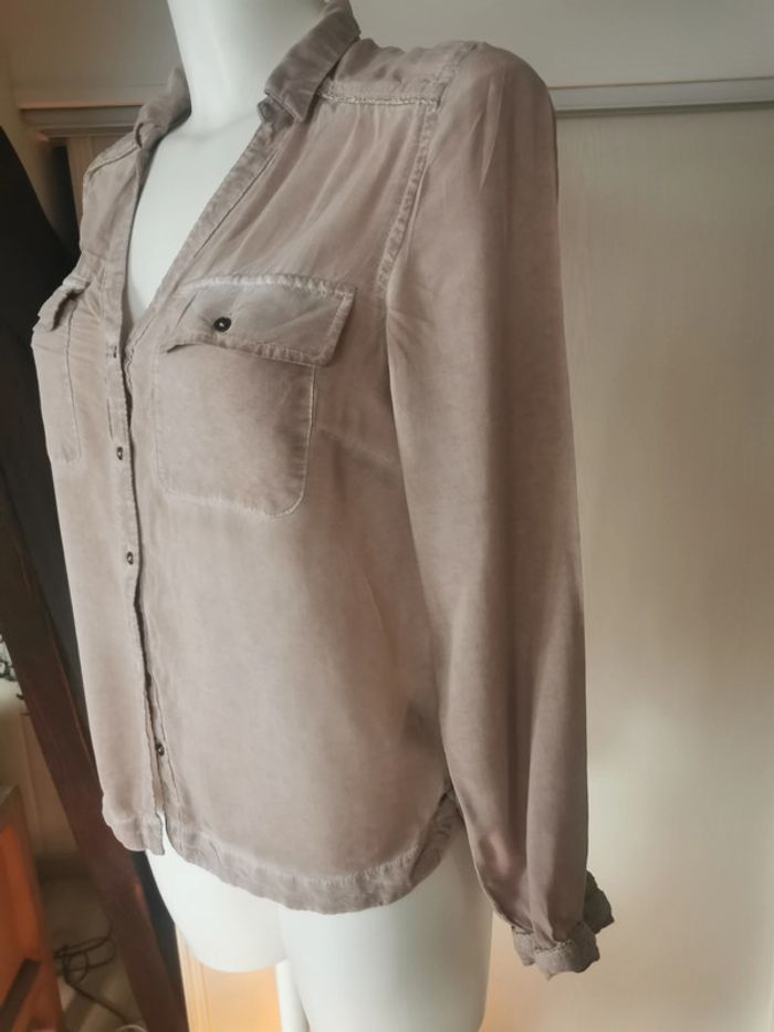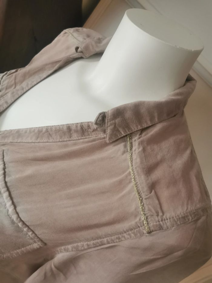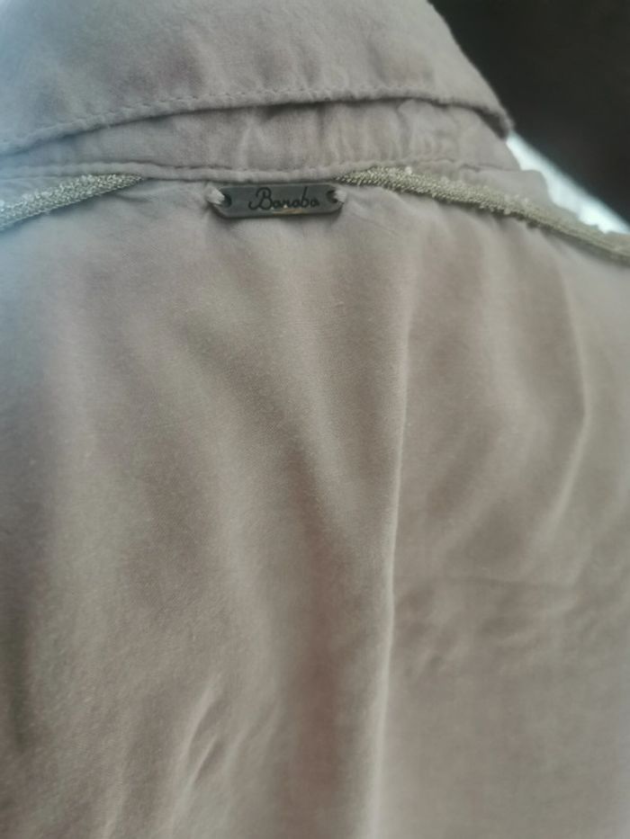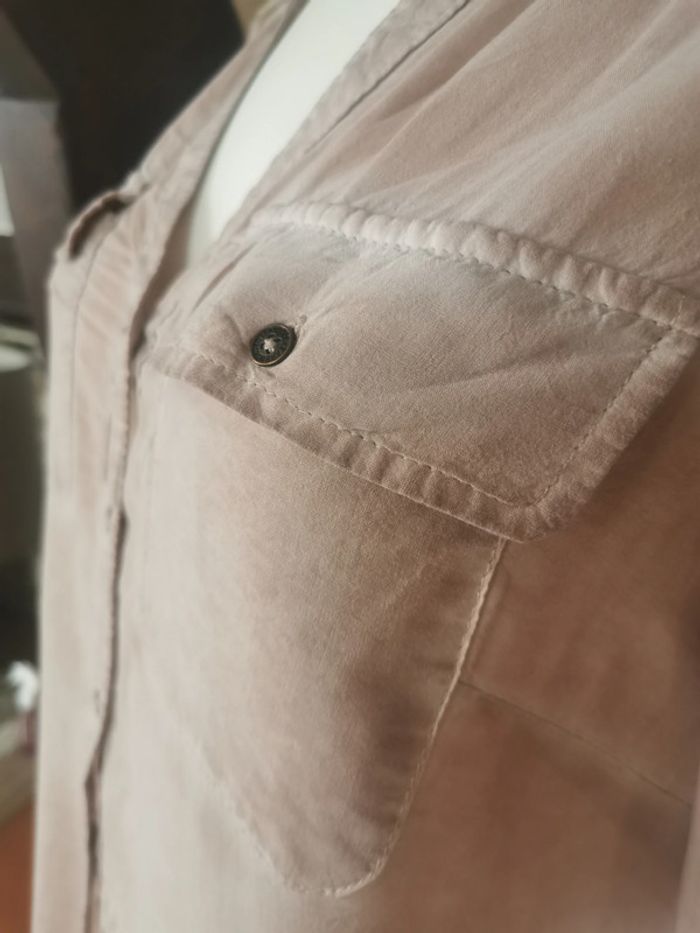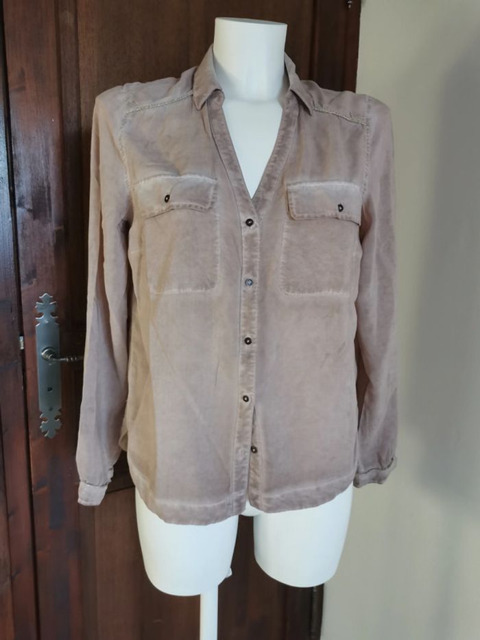 Blouse marron clair, transparente, tissu effet usé, mais ne l'est pas, marque Bonobo, taille M, composition : 100% viscose, autres parties 80% polyester, 20 % fil métallisé. Blouse est en très bon état généra, une accroche à la manche. Blouse coupe droiteavec le fil métallisé doré aux poignets et dos, petites fentes sur les côtés, blouse à boutons, 2 poches plaquées devant. Mesures : Longueur : 61 cm Longueur manche depuis l'aisselle : 47 cm Longueur manche depuis l'épaule : 60 cm Largeur épaules : 36 cm Largeur entre les aisselles : 50 cm Longueur décolleté : 16 cm Poids : 110g. #blousemarron #blosebonobo #chemisierviscose #chemisetaillem