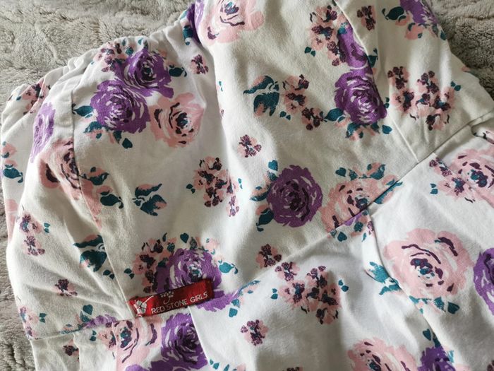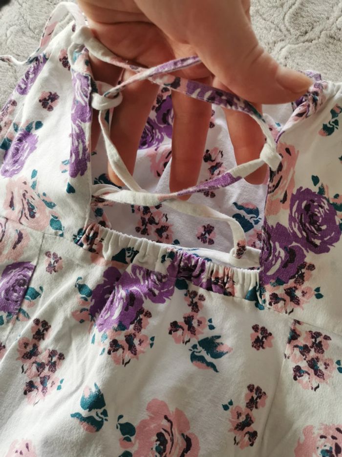 Robe bustier blanche à fleurs violet et rose en coton, dos laçé, le devant est avec élastique, fabriquée au Brésil, composition : 98% coton, 2% élasthanne, taille n'est pas indiquée, mais je pense que c'est du 34 (voir les mesures ci dessous). Marque de la robe est Red stone girls. Jolie robe éstivale, en bon état général, sans doublure, avec les poches latérales. Mesures : Longueur robe : 45 cm (depuis de dessous poitrine) Longueur robe : 62 cm (depuis l'aisselle) Largeur dos : 34 cm Largeur taille haute : 33 cm Largeur hanches : 46 cm Poids : 190g. #robebustier #robeblancheafleurs #robecoton #robetaille34 #robedete