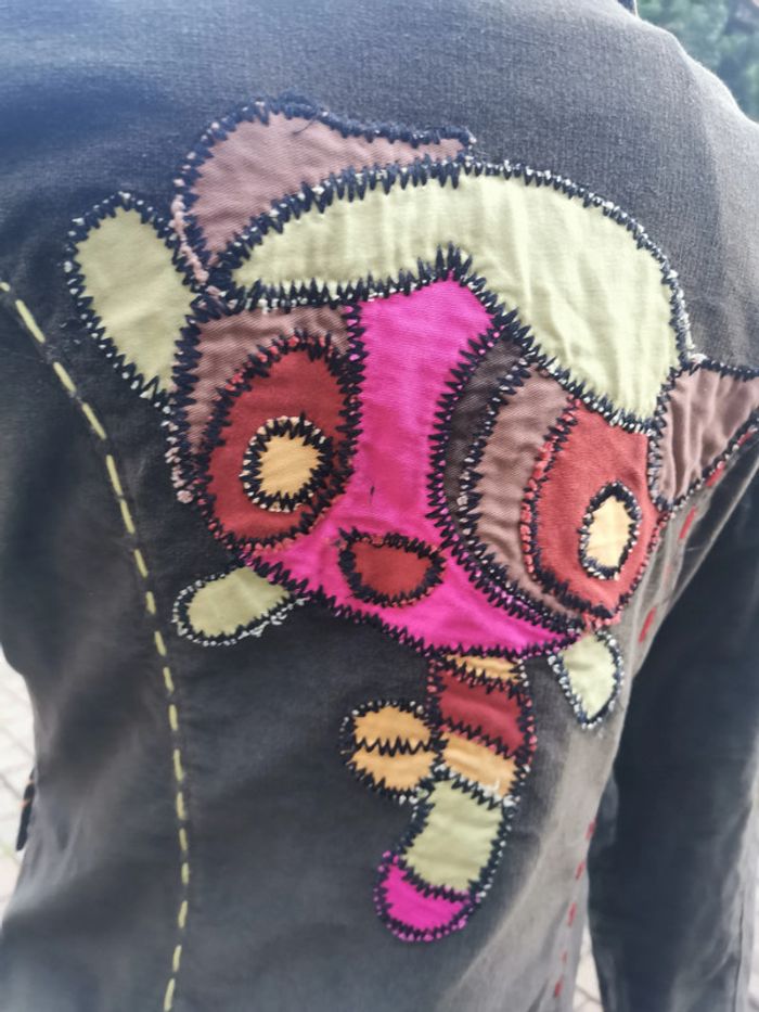 Veste marron en coton et velours cotelé patchwork animal au dos