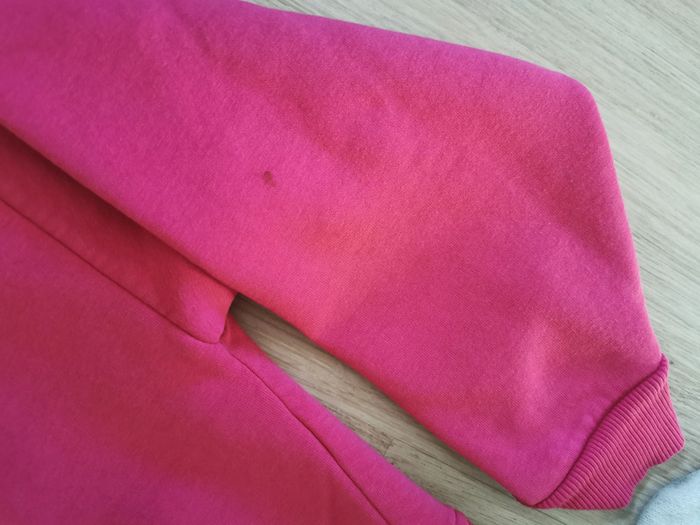 L'ensemble de sweat et jogging rose Mickey, en bon état général, quelques taches (voir les photos), la couleur rose fuschia a un peu dépassée, l'intérieur est peluché, doux et chaud, marque Disney, taille 42/44. L'ensemble est chaud et très confortable, à noter que le pull est court type top crop, manches longues, pantalon est reserré aux chevilles et à la taille. Mesures sweat : Longueur sweat : 50 cm Longueur manche depuis l'aisselle : 39,5 cm Longueur manche depuis l'épaule : 47 cm Largeur dos épaules : 70 cm Largeur dos aisselles : 66 cm Mesures pantalon : Longueur jambe depuis la taille : 101 cm Longueur jambe depuis l'entre jambe : 74 cm Longueur l'entre jambe (devant+dos) : 71 cm Largeur hanches : 52 cm Poids : 739 g *Mannequin fait la taille 36 #joggingrose #sweatmickey #croptopmickey #joggingmickey