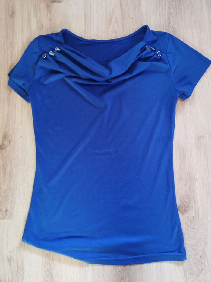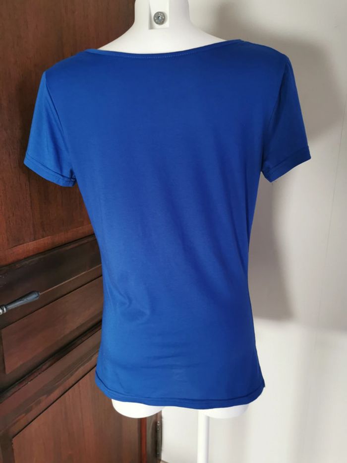 T-shirt bleu éléctrique boutons argentés - photo numéro 1