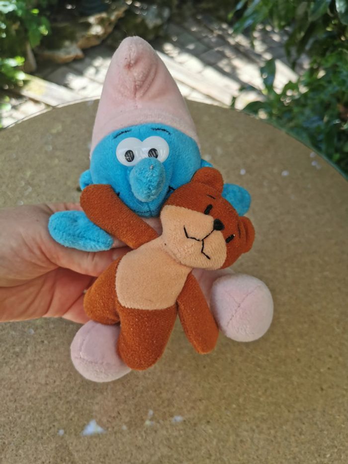 Schtroumpf bébé avec doudou ours peluche - photo numéro 1