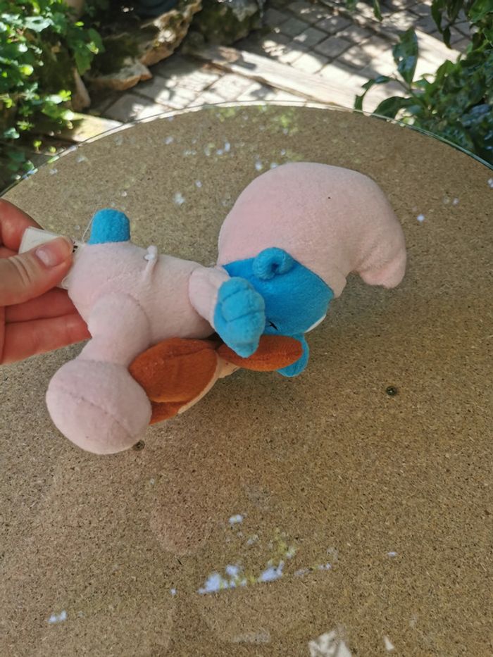 Schtroumpf bébé avec doudou ours peluche - photo numéro 5