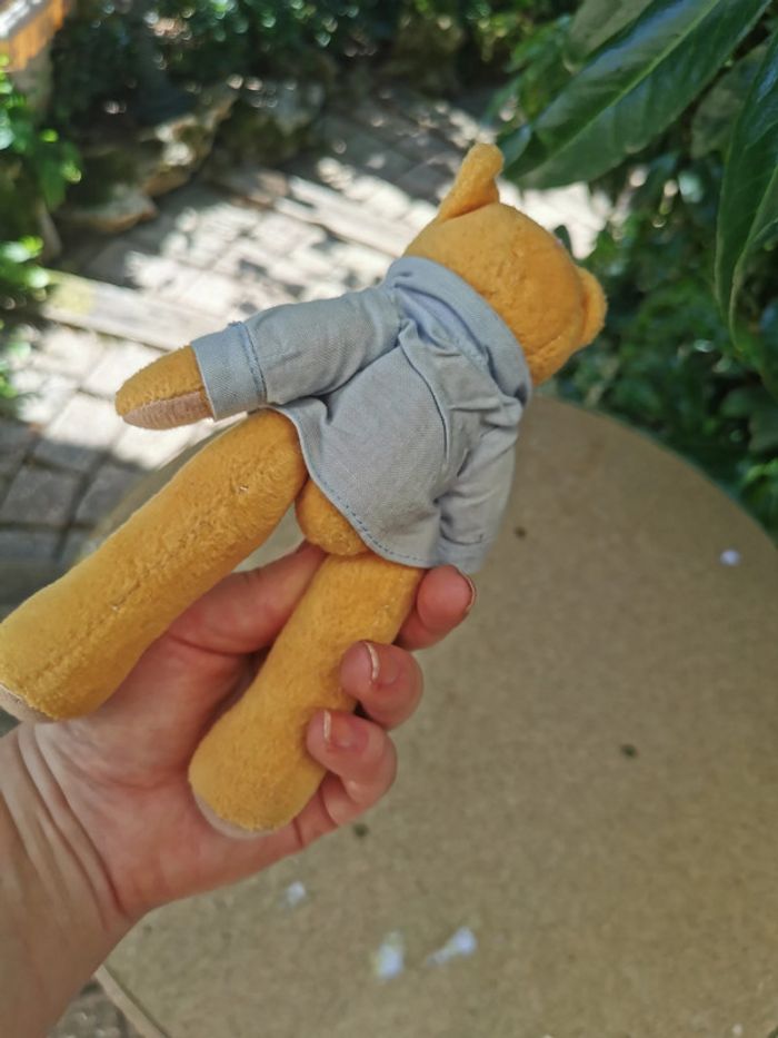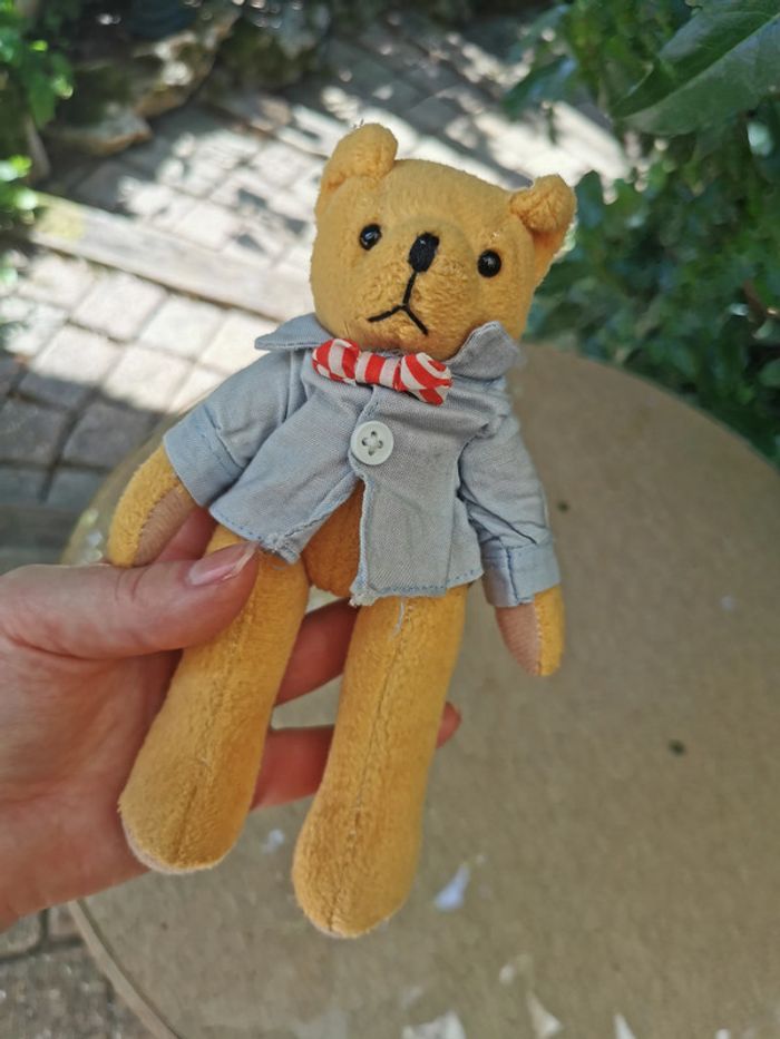 Peluche ours en chemise articulé, belle peluche vintage, bras et jambes sont articulés, mais pas la tête , la chemise ne s'enlève pas, taille 17 cm, 62 g. Peluche en très bon état. #peluchevintage #pelucheours #ourschemise #peluchearticulee #pelucheoursarticule