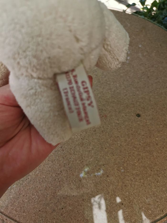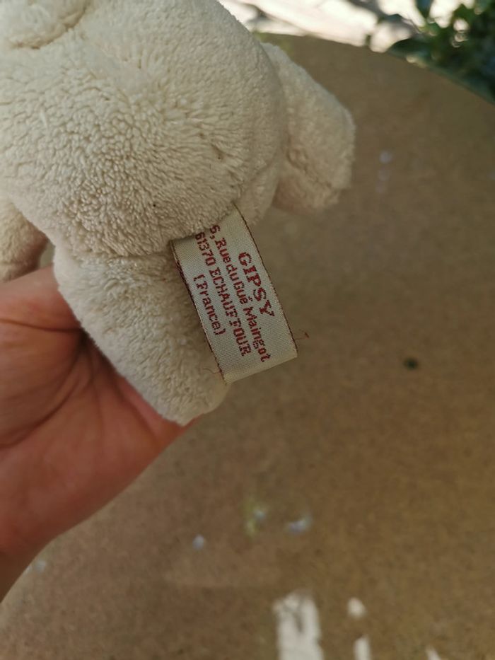 Ours blanc crème petite peluche Gipsy, en bon état, une petite tache sur la patte, taille 13 cm, poids 37g. #oursblanc #petitepeluche #pelucheoursblanc #peluchegipsy