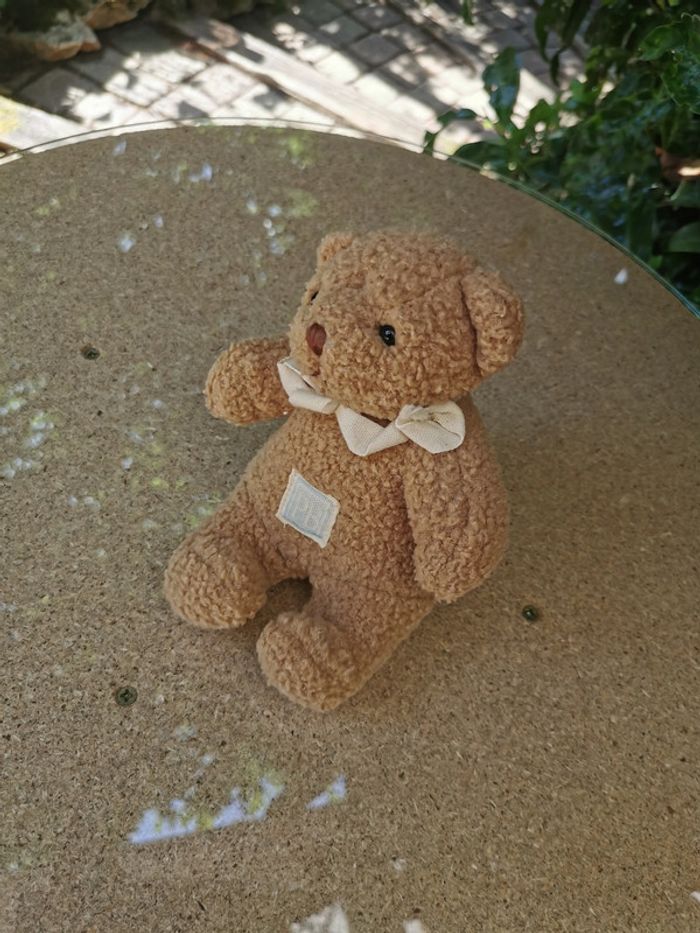 Peluche ancienne ours bouclette marron Petit Bateau, en bon état. Taille 15 cm, poids 56g. #pelucheours #oursmarron #peluchevintage #pelucheancienne #peluchepetitbateau