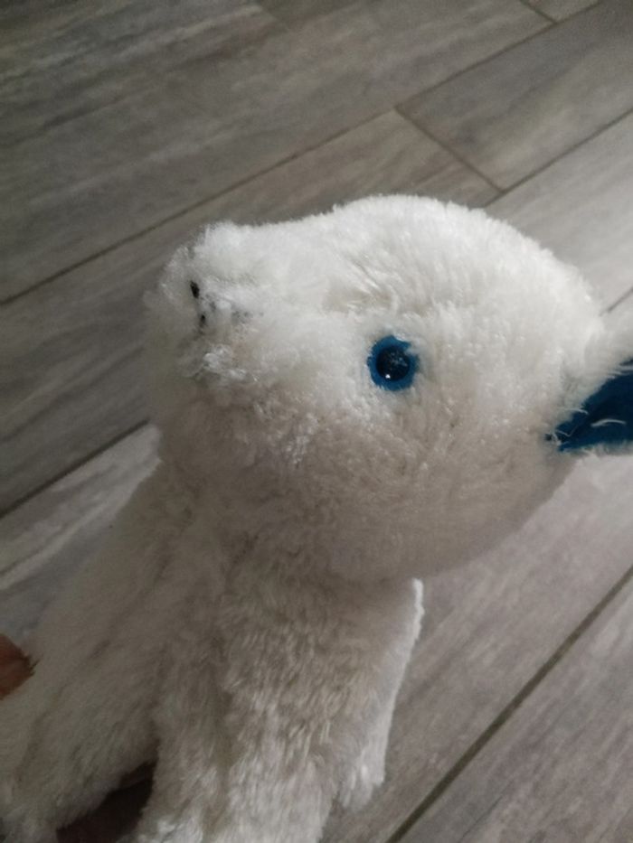 Peluche ancienne mouton blanc aux oreilles bleus - photo numéro 2