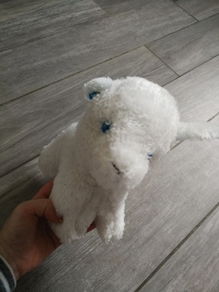 Ancienne peluche du mouton blanc aux oreilles et yeux bleus. Les yeux sont en plastique et sont marqués. La peluche des années 80/90 voir plutôt. Taille : 22 cm, poids : 180 g. Bon état général. #peluchemouton #pelucheancienne #moutonpeluche
