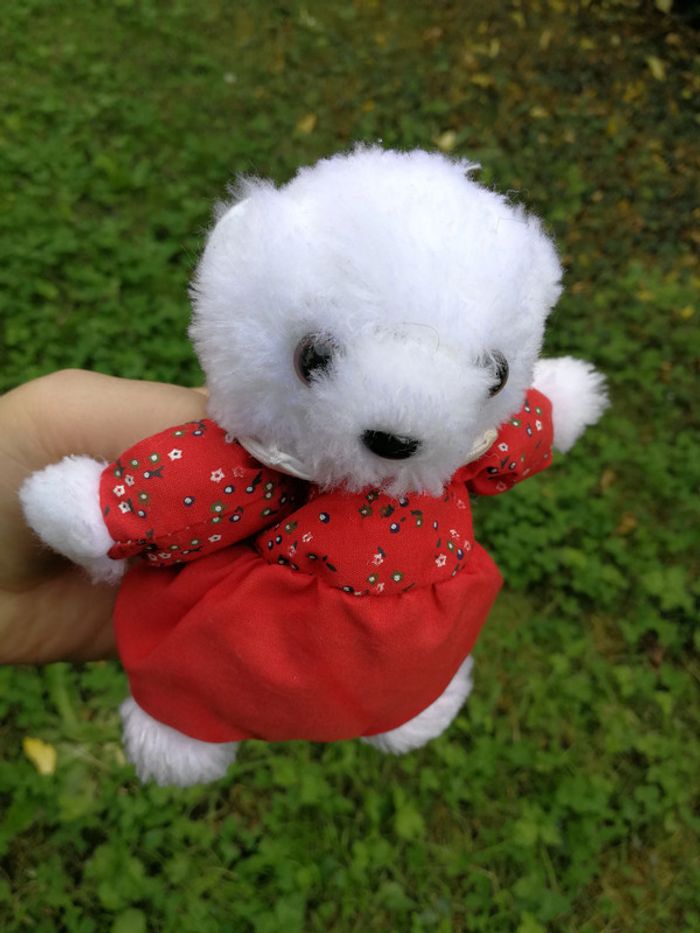 Peluche ours blanc habillé en rouge Yves Rocher vintage - photo numéro 2