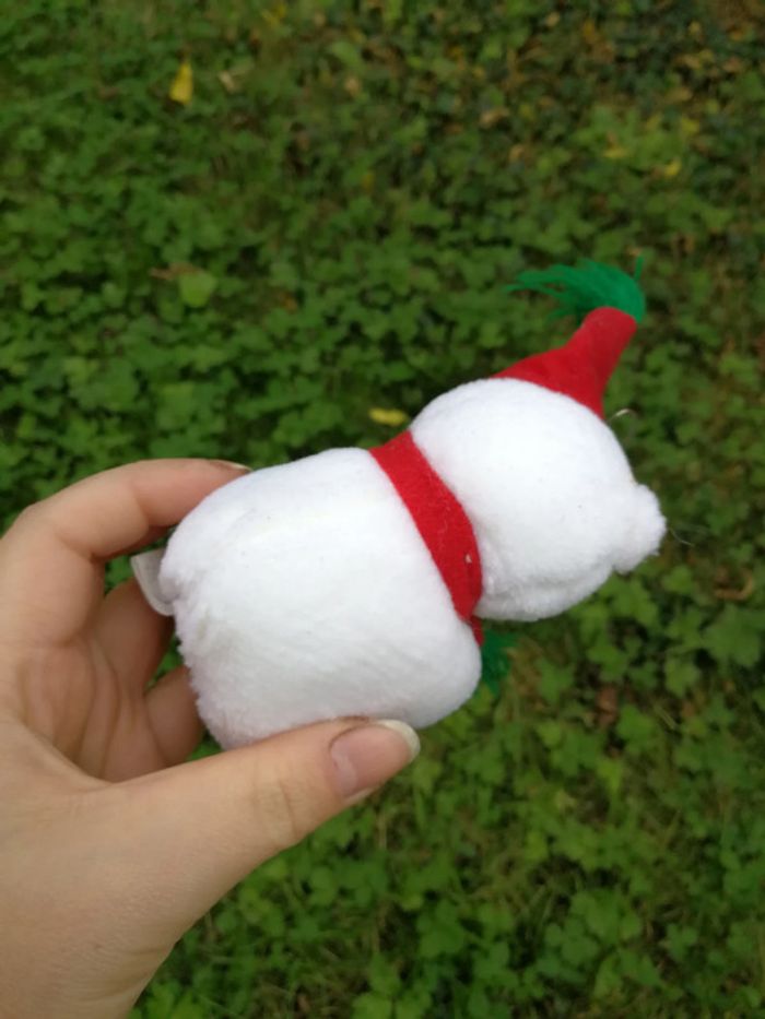 Peluche ours blanc de Noel, les yeux et le nez sont en plastique, vintage, en très bon état, son poids fait 24 g et sa taille 9 cm. #peluche #pelucheoursblanc #pelucheminiature #peluchenoel