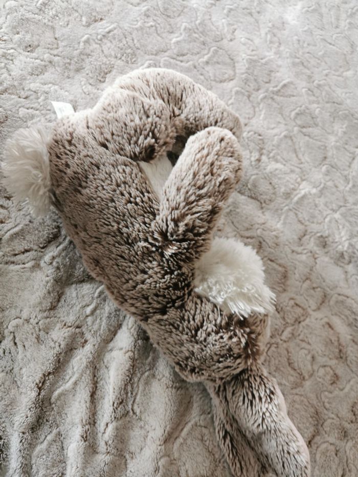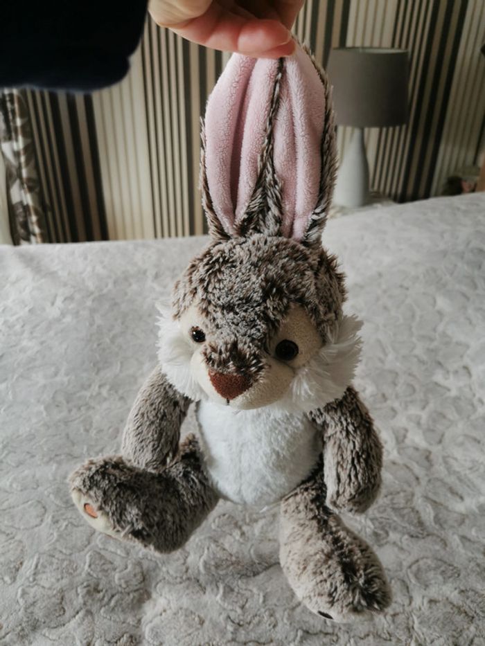 Peluche lapin doudou très doux marron et blanc, marque Nicotoy, en très bon état. Taille 36cm, poids 194g #peluchelapin #lapindoudou #doudoulapin #nicotoylapin