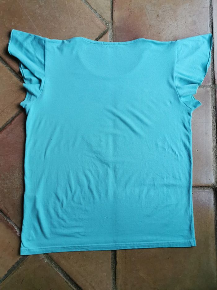 T-shirt bleu turquoise brodé de strass - photo numéro 3