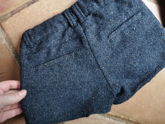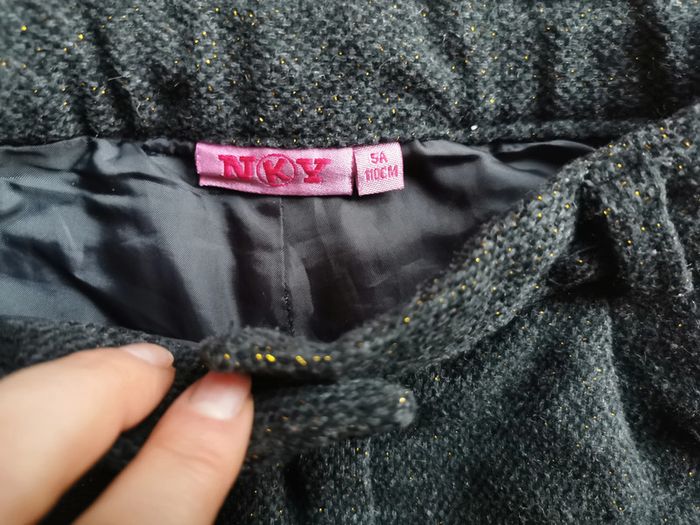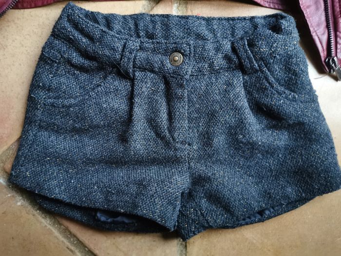 1. Short gris anthracite brillant, marque NKY, 5 ans, composition : 73% polyester, 25% laine, 2% fibre métallique, en bon état général, un peu peluché. Le short avec les poches, longueur 20 cm, largeur hanches 35 cm, largeur cuisse 20 cm, tour de taille 57,5 cm