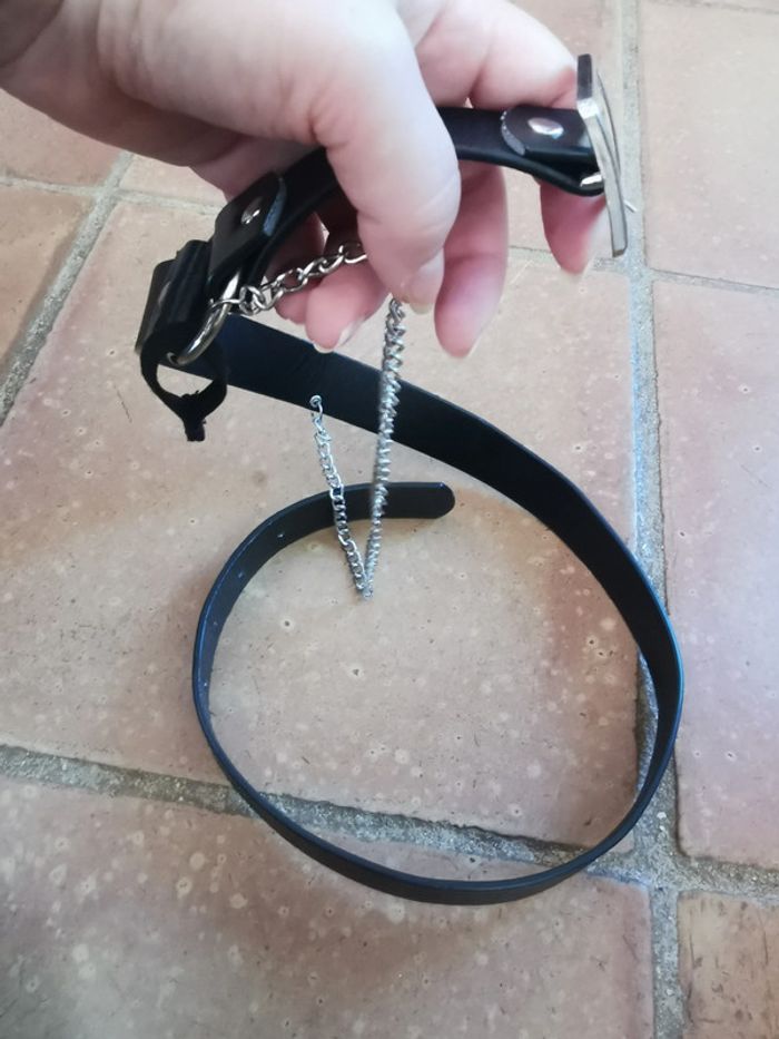 Ceinture noire en similicuir avec chaîne et boucle argentées - photo numéro 1