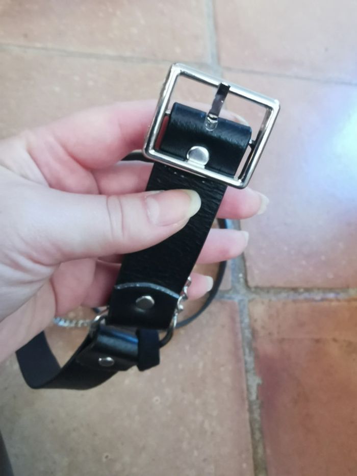 Ceinture noire en similicuir avec chaîne et boucle argentées - photo numéro 4