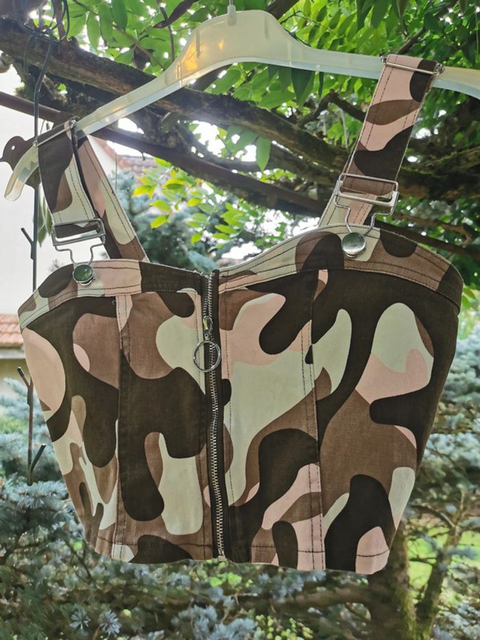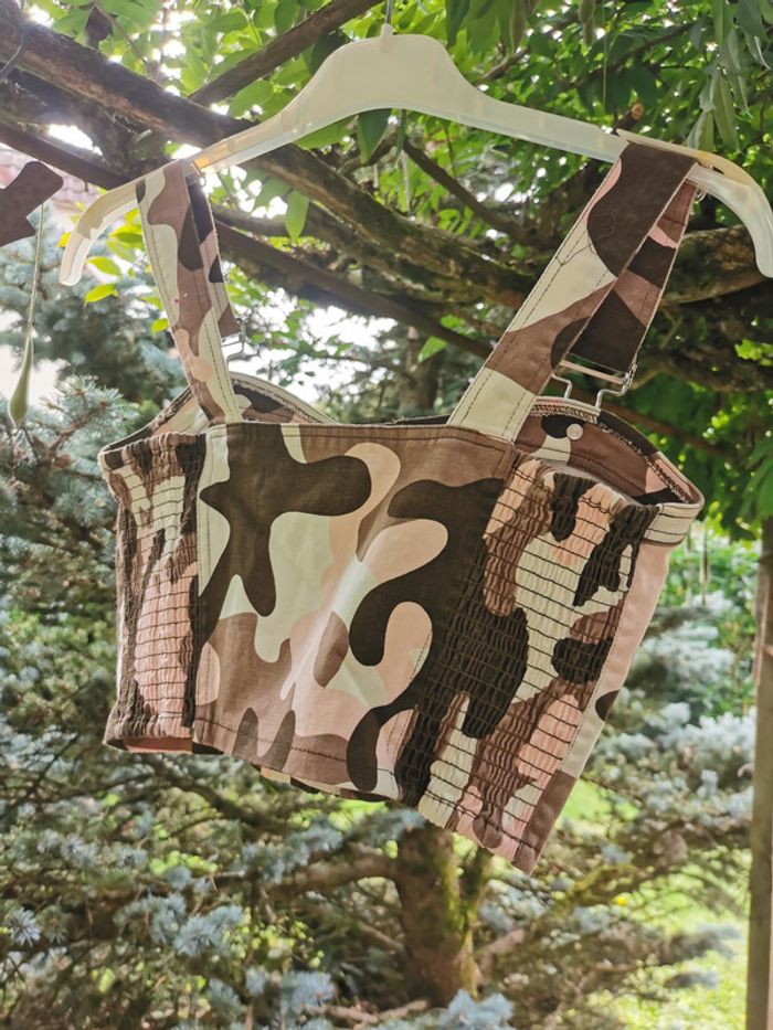 Crop top à bretelles imprimé militaire Jennyfer - photo numéro 8