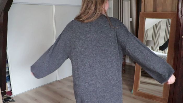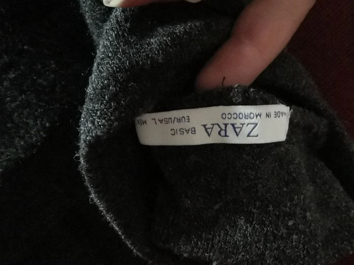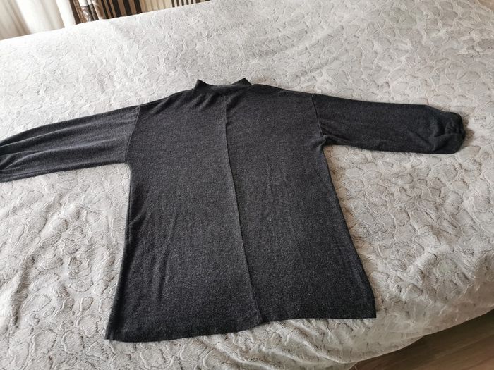 Robe grise manches longues avec les élastiques au poignets, en laine ou acrylique, il n'y a plus d'étiquette de composition, marque Zara, taille L, bon état général, robe courte droite, col montant, quelques peluches bas de robe. Mesures : Longueur : 87 cm Largeur épaules : 67 cm Largeur entre les aisselles : 63 cm Largeur taille : 62 cm Largeur bas de robe : 64 cm Longueur manche depuis l'épaule : 49 cm Longueur manche depuis l'aisselle : 43 cm Largeur manche : 24 cm Poids : 400g #robecourtelaine #robelaine #robegrise #robedroite #robemancheslongues #robezara