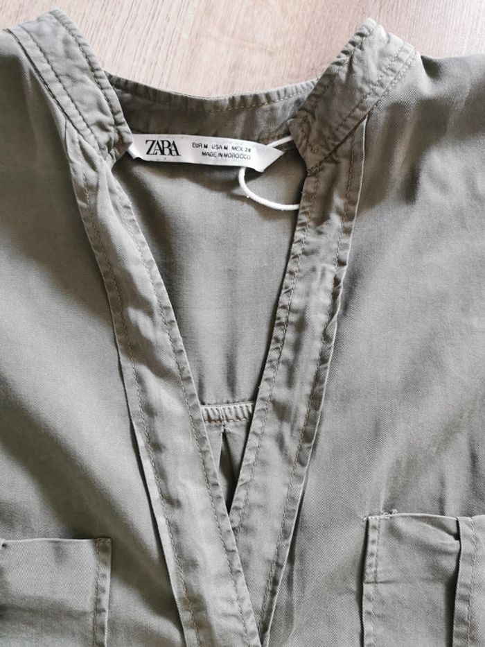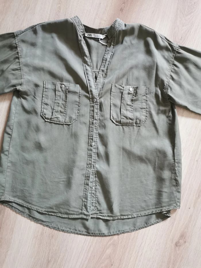 Blouse kaki lyocel  manches longues Zara - photo numéro 2