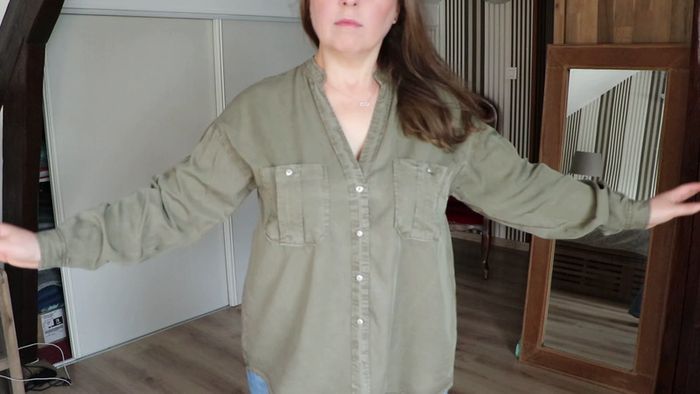 Blouse kaki lyocel  manches longues Zara - photo numéro 4