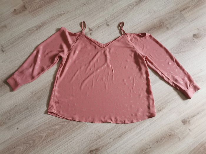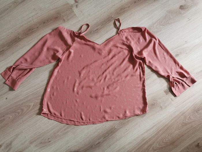 Blouse rose imprimée plumes épaules découvertes - photo numéro 3