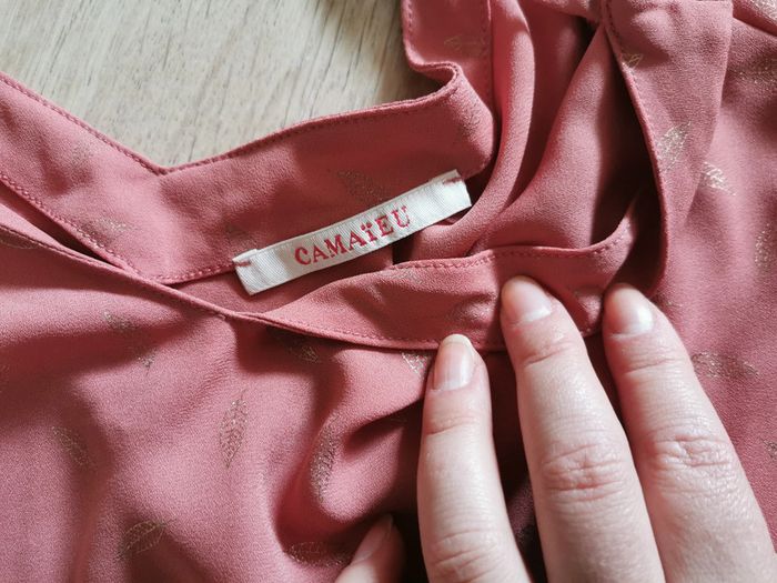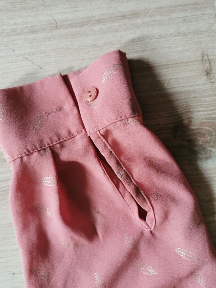 Blouse couleur vieux rose imprimée plumes rose doré épaules découvertes, manches longues, bouons aux poignets, marque Camaieu, taille 38 ? (il n'y a plus d'étiquette ni de taille ni de sa composition, voir les mesures ci-dessous). La matière est lisse et agréable au tocher entre la viscose et le satin. En très bon état. Mesures : Longueur : 48 cm (depuis le dos) Longueur : 33 cm (depuis l'aisselle) Largeur : 63 cm Largeur antre les aisselles : 55 cm Longueur manche : 49 cm Longueur manche depuis l'aisselle : 38,5 cm Largeur manche : 18 cm Poids : 125g #blouserose #blouseplumes #blousemancheslongues #blouseepaulesdecouvertes #blouseimprimeplumes #blousecamaieu