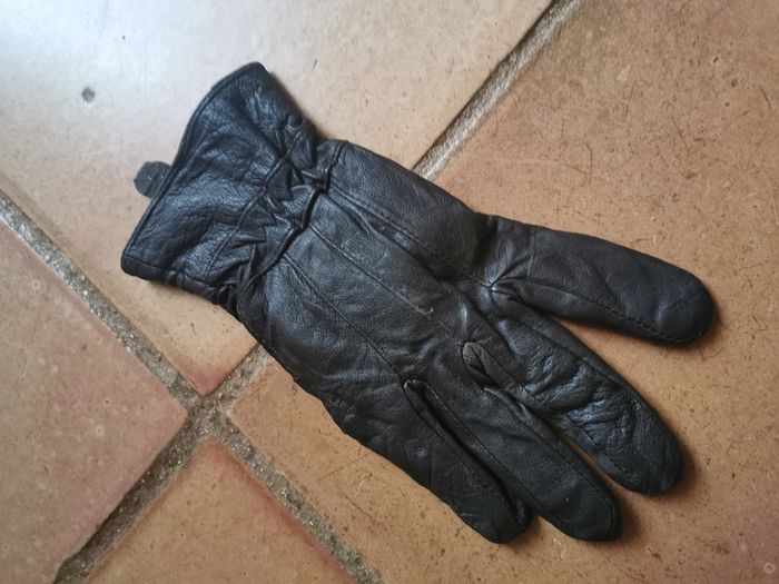 Gant en cuir marron, je n'ai pas sa paire, il est tout seul, en bon état général, doit faire taille 8, un peu marqué entre les doigts, l'intérieur est en tissu polaire en très bon état. Gant vintage. Mesures : Taille : 8 longueur : 24,5 cm Largeur : 9 cm Longueur pouce : 7,5 cm poids : 31g #gantencuir #gantmarron #gantcuirmarron