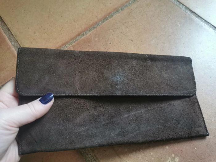 Pochette en daim marron l'intérieur en feutrine noire - photo numéro 5