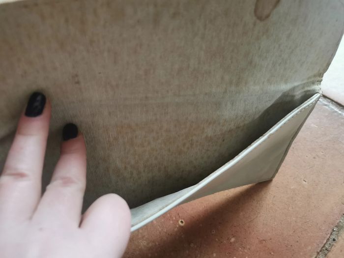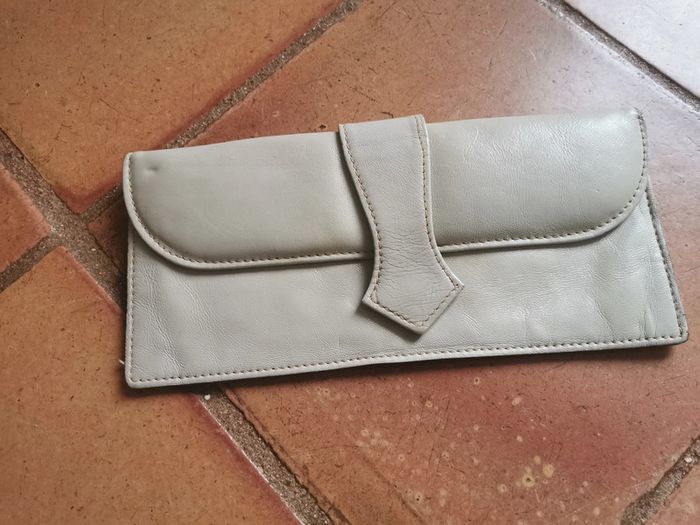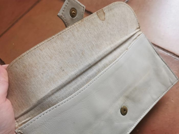 Pochette clutch en cuir blanc écru années 60/70, vintage, l'intérieur est en coton, très marqué par des taches jaunes de viellesse, poche extérieur avec l'intérieur en satin, pochette fine à rabat rembourré se fermant par un bouton pression, extérieur est un peu marqué, bon état général pour son âge, satisfaisant en globalité. Pour les collectionneur ou à réstaurer. Dimensions : Hauteur : 13 cm Largeur : 28 cm Poids : 155g #pochetteclutch #pochetteblancecru #pochettevintage #pochetteannee70 #pochetteannee60