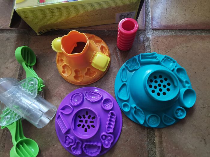 Spaghetti Factory Play Doh vINCOMPLET, la boîte contient uniquement ce qui est présenté sur la photo, il n'y a pas de pâte à modéler. Le tout est en très bon état, le prix tient compte de ses défauts. Si bvous souhaitez avoir des remises pensez à faire des lots. Poids 435g #spaghettifactory #spaghettifactoryplaydoh