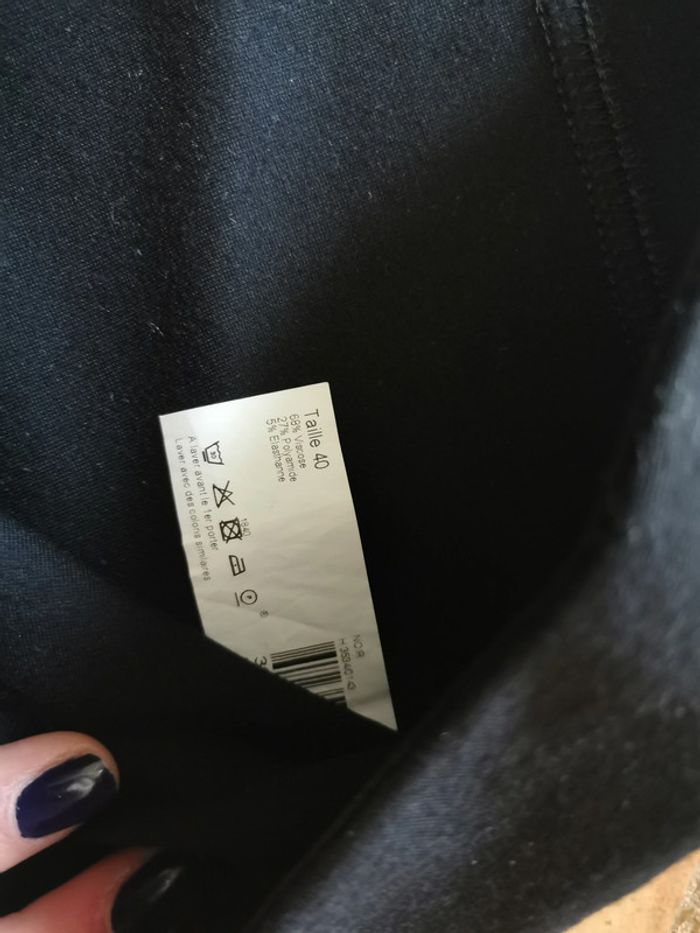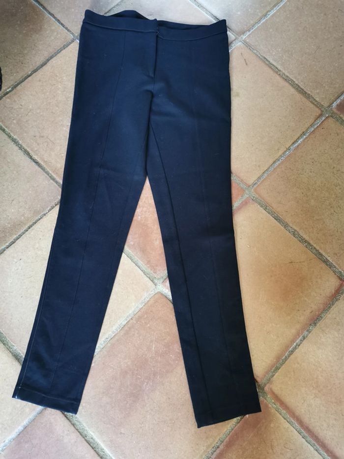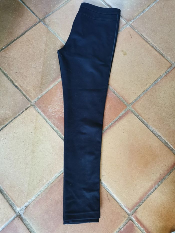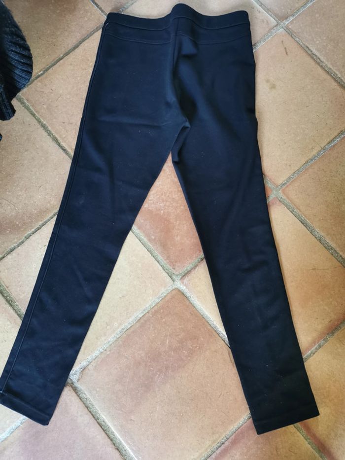 Pantalon legging noir avec liséré brillant type simili cuir, marque Monoprix femme, taille 40, en très bon état, dans une matière très agréable, élastique, composition : 68% viscose, 27% polyamide, 5% élasthanne, très peu porté. Mesures : Longueur depuis la taille : 102,5 cm Longueur depuis l'entre-jambe :78 cm Hauteur devant : 25 cm Hauteur dos : 32 cm Largeur taille : 40 cm Largeur hanches : 43 cm Largeur cuisse : 21 cm largeur mollet : 16 cm Largeur cheville : 13,5 cm Poids : 420g #pantalonnoir #pantalolegging #leggingnoir #legginglisere