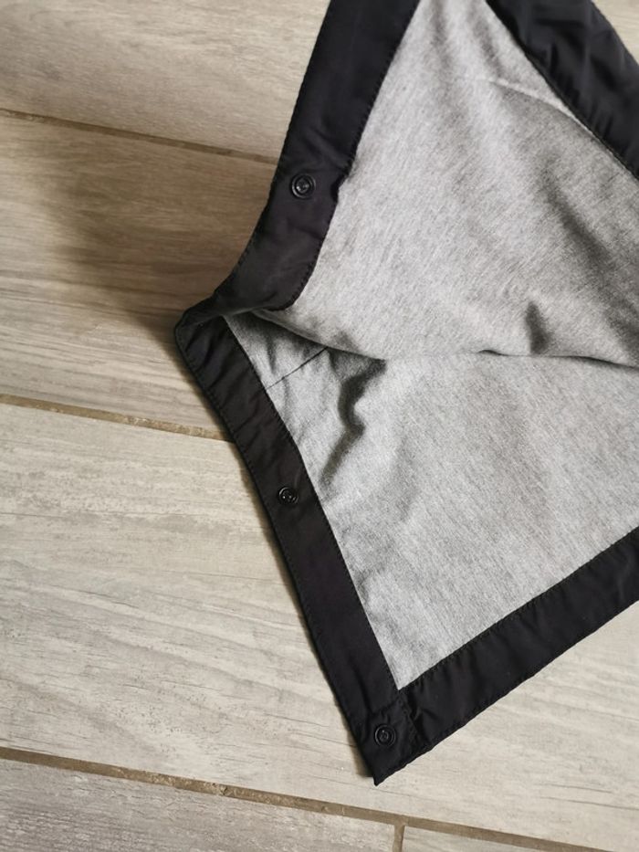 Capuche noire doublure coton gris, dessus en matière fine type impérmeable, se fixe par bouton préssion. Capuche pour veste, en très bon état, comme neuf. Mesures : Longueur : 46 cm Hauteur : 31 cm Profondeur : 22 cm Espace entre les boutons : 9,5 - 10 cm Poids : 55g #capuchenoire #capuche #capucheveste #capuchedoublurecoton