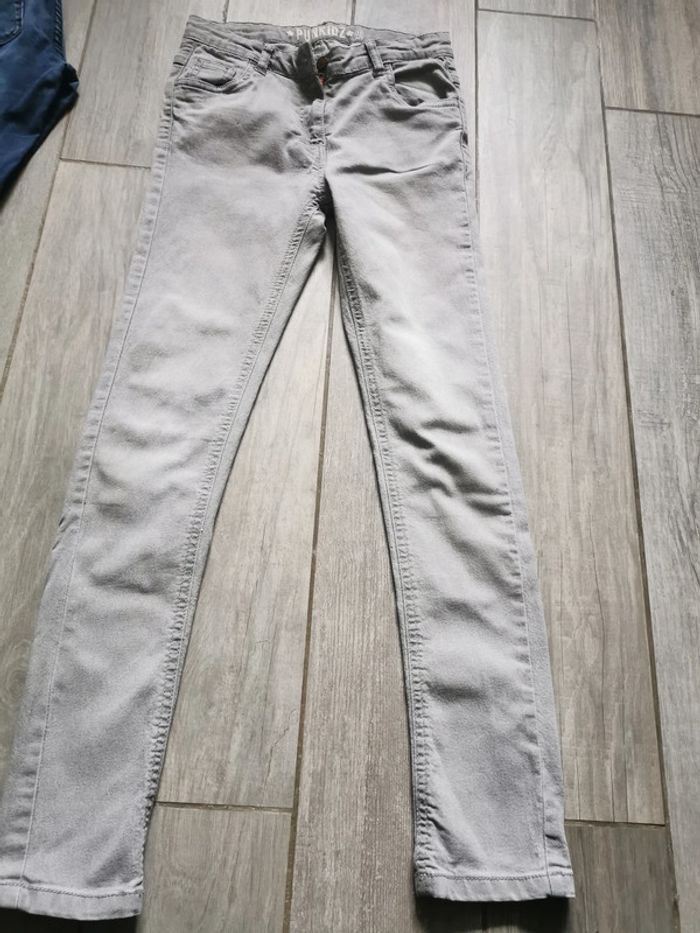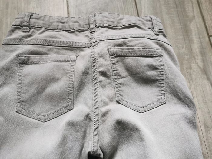 1 jeans gris clair, marque Punkidz, en très bion état, taille réglable, le jeans s'étire légérement. Mesures : longueur depuis la taille : 91cm, longueur depuis l'entre-jambe : 68cm, largeur taille : 31 cm, hauteur l'entre -jambe devant : 20cm, hauteur l'entre-jambe derrière : 26,5 cm, largeur hanche : 36 cm, largeur jambe : 17 cm.