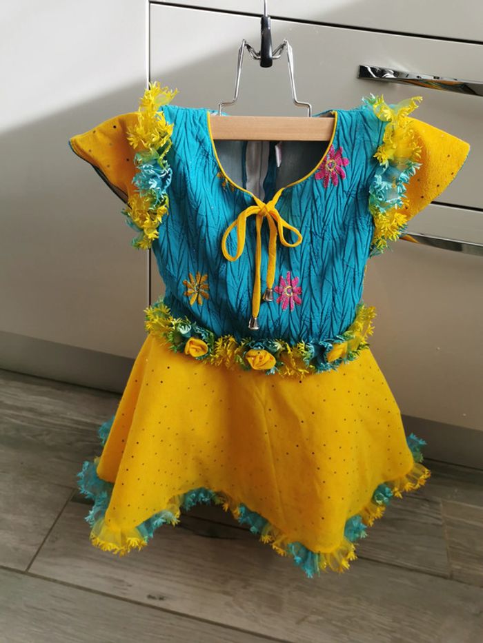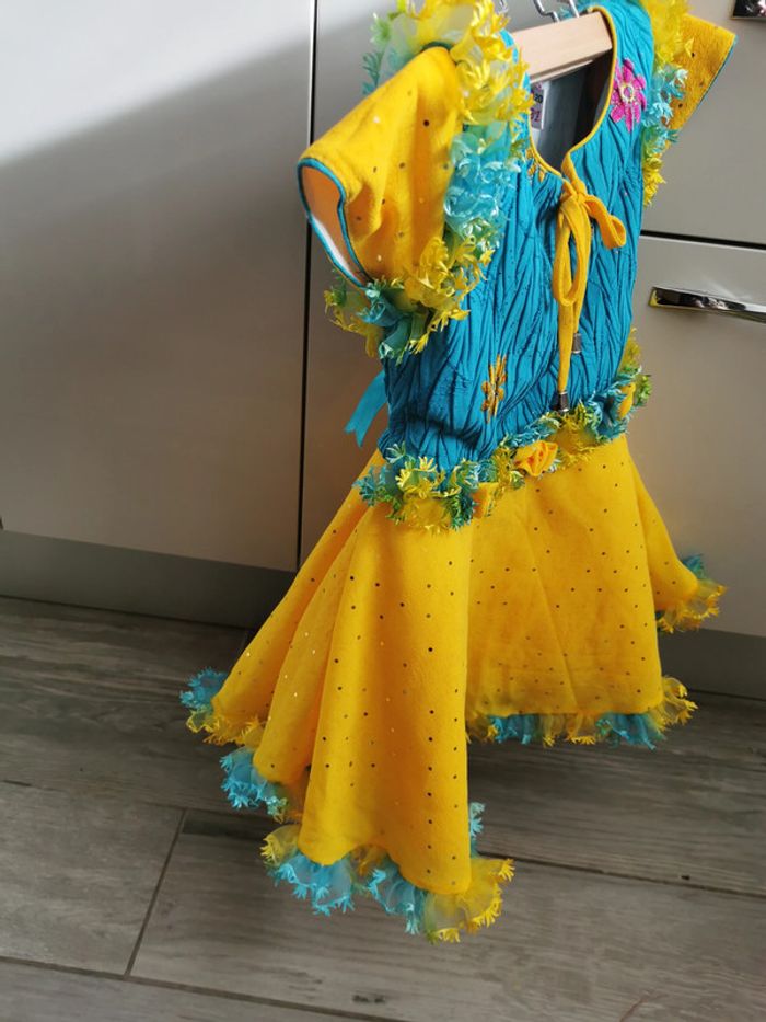 Robe jaune et bleu avec les fleurs 4-5 ans - photo numéro 10