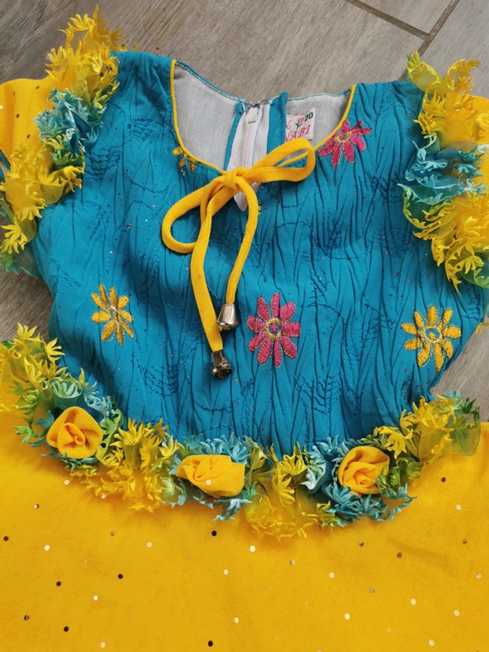 Robe jaune et bleu avec les fleurs 4-5 ans - photo numéro 11