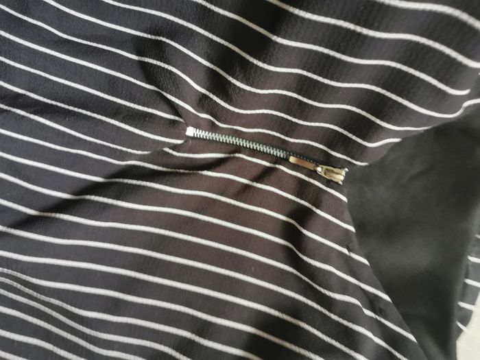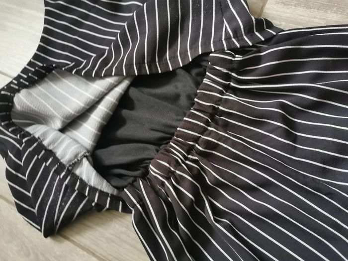 Combinaison pantalon noir et blanc à rayures, pour 10 ans, marque Creeks, au dos décolté en V et fermeture éclair métallique, la taille élastiquée, 100% polyester, en très bon état. Mesures : Longueur pantalon depuis l'entrejambe : 42 cm Longueur pantalon depuis la taille : 63 cm Largeur jambe : 25 cm Largeur taille : 26-30 cm Poids : 165 g #combipantalon #combinaison #combinaison10ans #combinaisonarayures #creeks