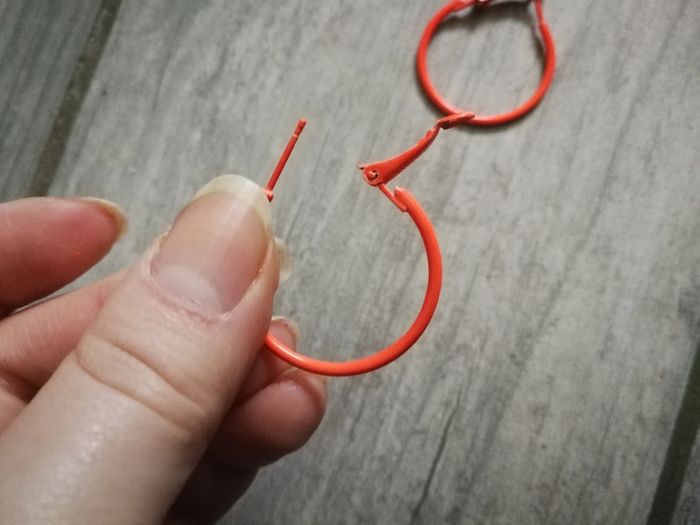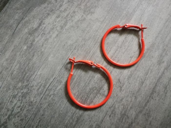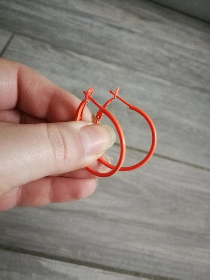 Boucles d'oreilles oranges mini créoles, en très bon état, 3 cm de diamètre, poids 3 g, en métal. #bouclesdoreilles #bouclesdoreillesorange #creoles #creolesorange #anneaux #bouclesdoreillesanneaux