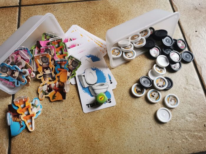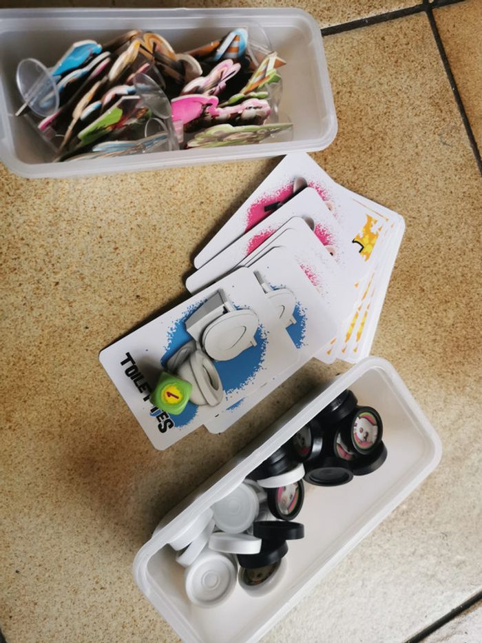 Jeu de cartes Lapin Crétins INCOMPLET. le lot comprend 4 jeux de cartes par 5 : vache, toilettes, lapin fou et tapette; 20 personnages/objets cartonnés; 1 dès vert; 15 jetons blancs et 15 jetons noirs. Le tout est en très bon état, le poids fait 102 g #jeudecartes #lapinscretins #jeudejetons