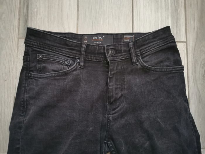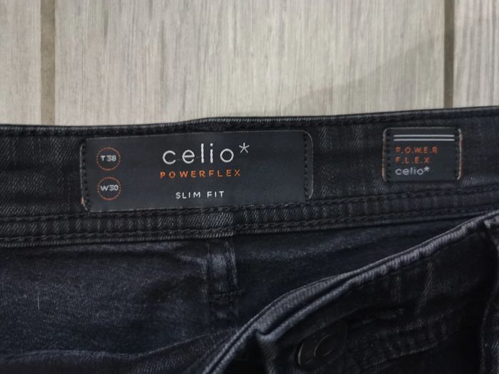 Jean slim fit noir, taille 38, marque Celio, pour femme, en très bon état général, juste un peu marqué en bas sur la jambe droite. Composition : 88% coton, 4% élasthanne, 8% polyester. Mesures : Longueur jambe depuis l'entre-jambe : 82 cm Longueur jambe depuis la taille : 108 cm Largeur taille : 38 cm Largeur hanches : 46 cm Largeur cuisse 23 cm Largeur cheville : 16 cm Longeur devant entre-jambe : 25 cm Tour d'entre-jambe : 59 cm Poids : 550 g #jeannoir #jeanslim #jeanslimfit #jeancelio #jeanceliofemme
