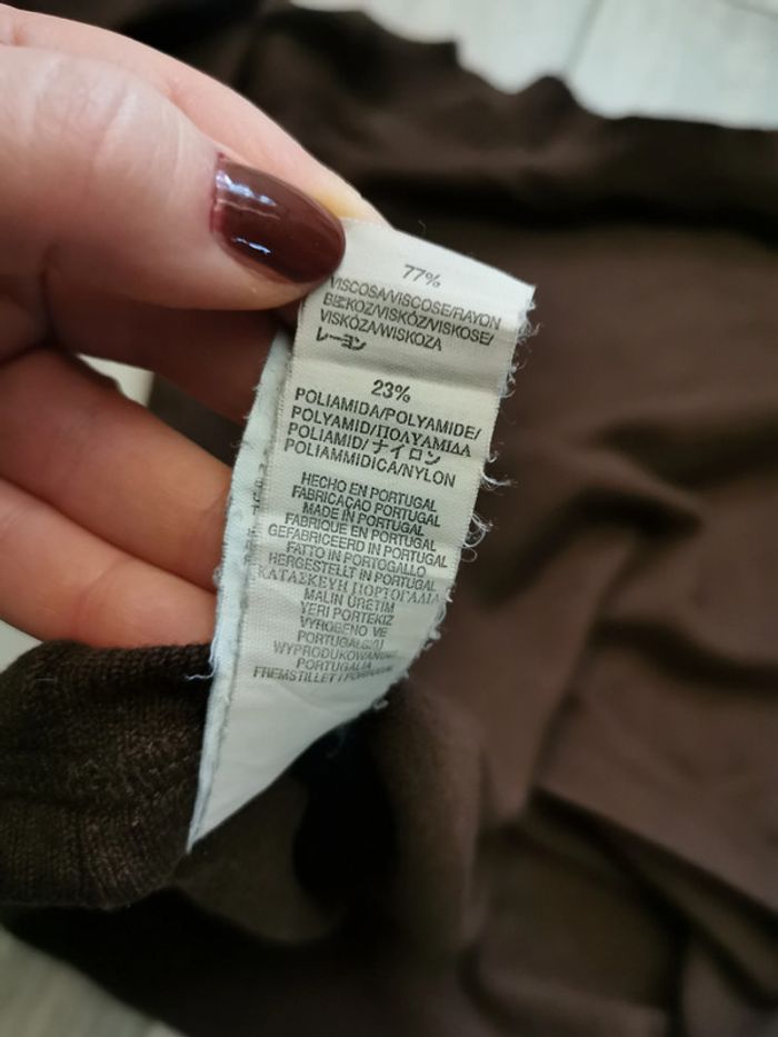 Haut marron col bateau manches 3/4, marque Zara, taille L, composition 77% viscose et 23% polyamide. En très bon état, couleur marron chocolat. Mesures : Longueur : 52 cm Largeur : 42 cm Longueur manche depuis l'aisselle (manche raglan) : 42 cm Poids : 215 g #hautmarron #hautcolbateau #hautmanchestroisquart #hautzara #hautchocolat