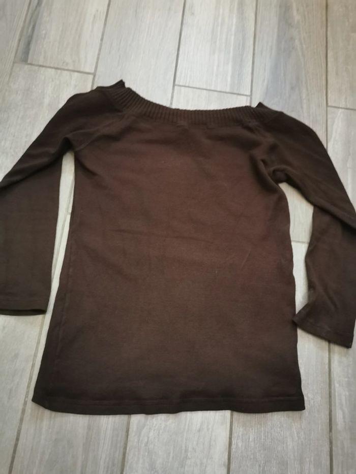 Haut marron col bateau manches 3/4 Zara - photo numéro 4