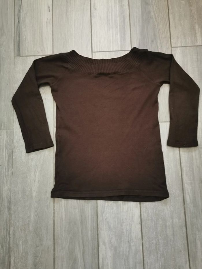 Haut marron col bateau manches 3/4 Zara - photo numéro 1