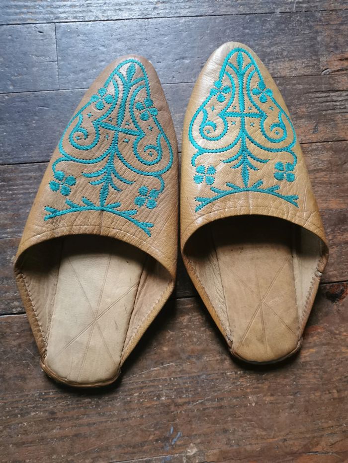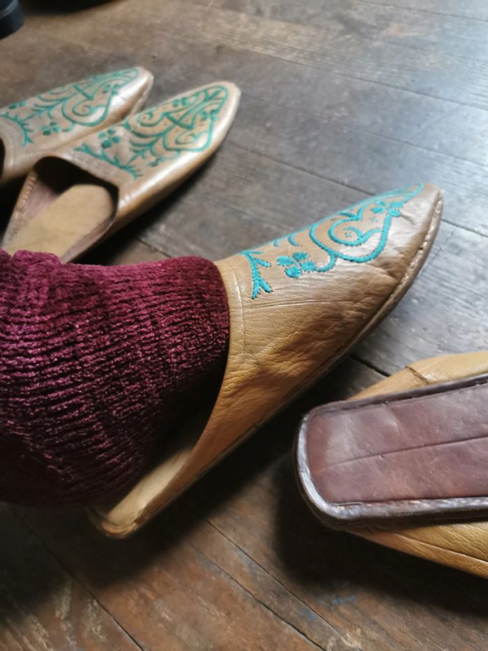 Babouche de petite pointure 36/37 (je ne sais pas exactement, voir les mesures ci-dessous) En très bon état général, des traces d’usure essentiellement sur la semelle extérieure, j’ai deux paires une claire et une en peu plus foncée, merci de me dire laquelle vous intéresse lors de l’achat, si non le prix affiché est pour 2 paires. Mesures : Longueur semelle : 25 cm (claire 26 cm) Largeur semelle : 5-7 cm (claire 6-7,5 cm) Hauteur : 6 cm Poids du lot : 561 g #babouches #babouchespointure37 #babouchesencuir #babouchespointure36 #babouchestaille36 #babouchestaille37